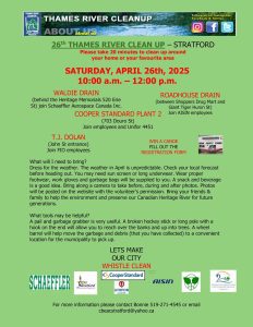 Join us on Saturday, April 12th, 2025 for our 26th annual Thames River Clean Up!